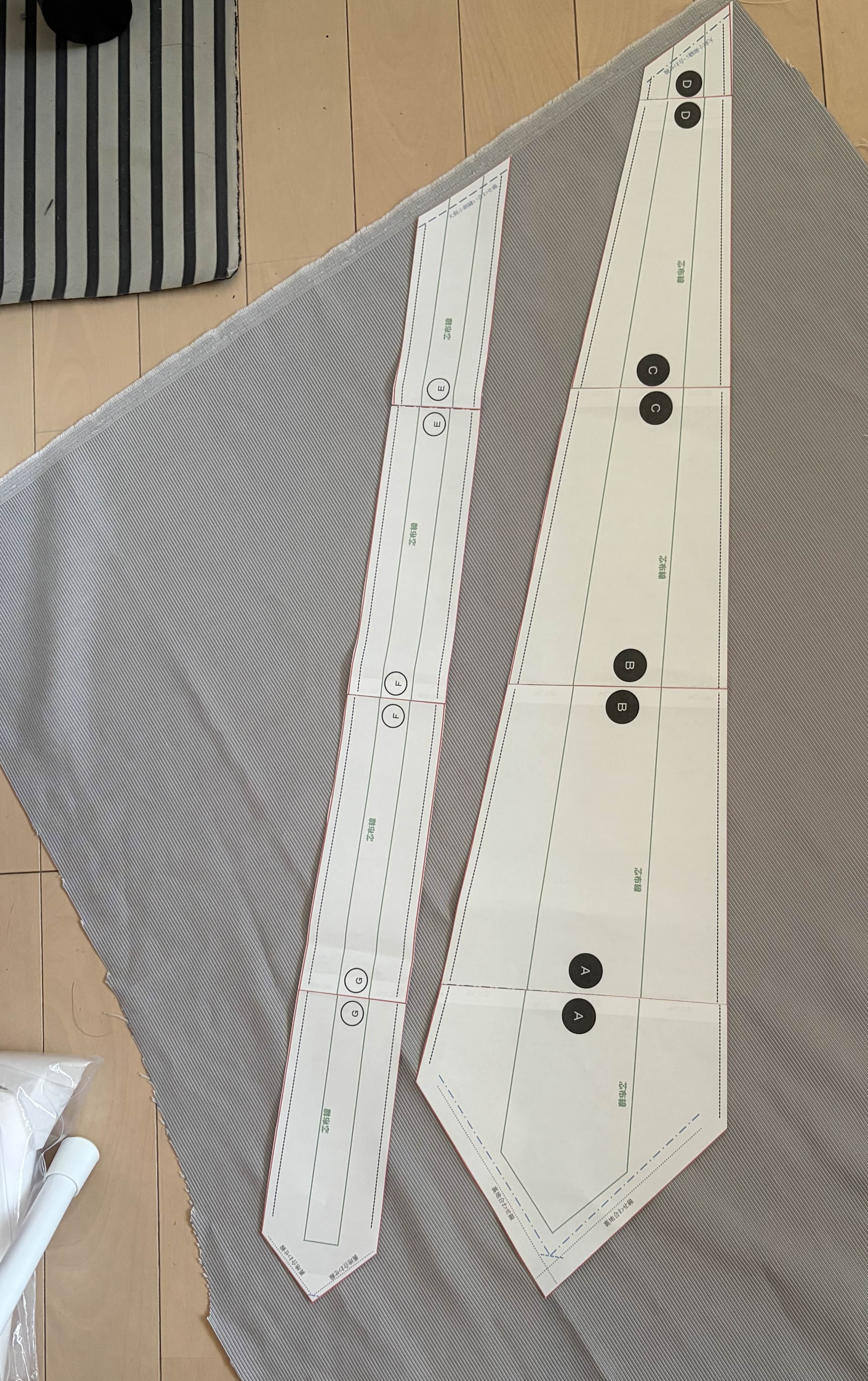 オリジナルネクタイ作ってみませんか?(Do you not make a tie?) 【For all clothes shops. Let’s sell an original necktie to rely on imported goods!】 (Everything is not in English. People overseas please see in the photograph)わざわざ丁寧に英語まで書いてある。これは分かる、人の手で書いてある英語だ。わたしは英語圏の裁縫コミュニティに入っており、チャットで作ったものを見せたり情報交換をしたりしている。それで毎日AIやらGoogle翻訳やらを酷使しながら必死に英語を書いていると、こういう素朴…… というのだろうか、ある意味血が通ったように感じる英語が見分けられる気がしてくるのだ。これはヒトが書いた英語だ。そしてこれはヒトが書いた記事だ。 しかも「売ろう!」(Let’s sell an original necktie)とまで書いてある。商用OK!? 面白すぎる! やってみようじゃないか! 今度は最後まで読み進めないまま、もう「これで作ろう」と決めてしまった。 どうやらこの記事を書かれた方(Kenji Nakajima:Director of the Observatoryと表記されていた)は裁縫を普段はされないようだ。「用意する材料」「用意する道具」などには手芸経験者が表記を省略してしまうようなものがたくさん書いてある。ハサミ、針、チャコペン、定規……。そうそう、最初はそういうのから集めていったなあ、と懐かしい気持ちでそのリストを眺めていく。 そして、この記事の素晴らしいところは、そんな裁縫初心者(?)の方が作られているページであるにも関わらず、PDF式の型紙が公開されていることである! わたしはPDF式の型紙を愛している。図書館で借りてくる洋裁本にはたいてい紙の型紙(これは電子の本-紙の本と同様の言葉のならびだ)がついていて、我々裁縫をする者の多くはそれをハトロン紙などに転記し、切り、使っている。が、わたしはその工程が大嫌いだ。今日日、型紙はパソコンで制作されているだろう。そのパソコンで作図したものを紙に印刷し、写し取り、パソコンで引いた線のようにきれいになるように努力して手でかく。それって一体何の意味があるんだ? はじめからデータで販売すればよいではないか! わたしはミシンをはじめて半年、このことを少なくとも100回は考え続けてきた。だから、PDF式の型紙を心から愛している。合理的で美しい。 配布されているPDFファイルをA4用紙に印刷し、貼り付けて、型紙を製作する。この型紙のPDFファイルはパワーポイントで作ったのだろうか? わたしの環境では多少ズレが出てしまったが、問題ない。 できた型紙をバイアス(布地に対して斜め45°)に配置する。ネクタイはその布地のドレープ感というか、落ち感というか、Instagramでファッショニスタ志望の人々が言っているような陳腐な言葉しか思いつかないが、とにかく布地がたゆたうように落ちるのが素晴らしいところである。その美しさを作りあげるのがバイアス裁ちなのである、と、わたしは思う。ちなみに、この布は廃材を使用していて、元は病院で使われていたカーテンらしい。素材はポリエステル100%で、厚くもなく薄くもない。コットンやシーチング生地よりも扱いはしづらく、手から布が滑る感じがある。布はバイアスに裁つと伸縮性が増し、より伸びるようになる。これが後々のわたしを苦しめることとなる。 裏地も含め、順調に布の切り出しまで終えた。天文台のサイトを見つけてからここまで、小一時間といったところ。